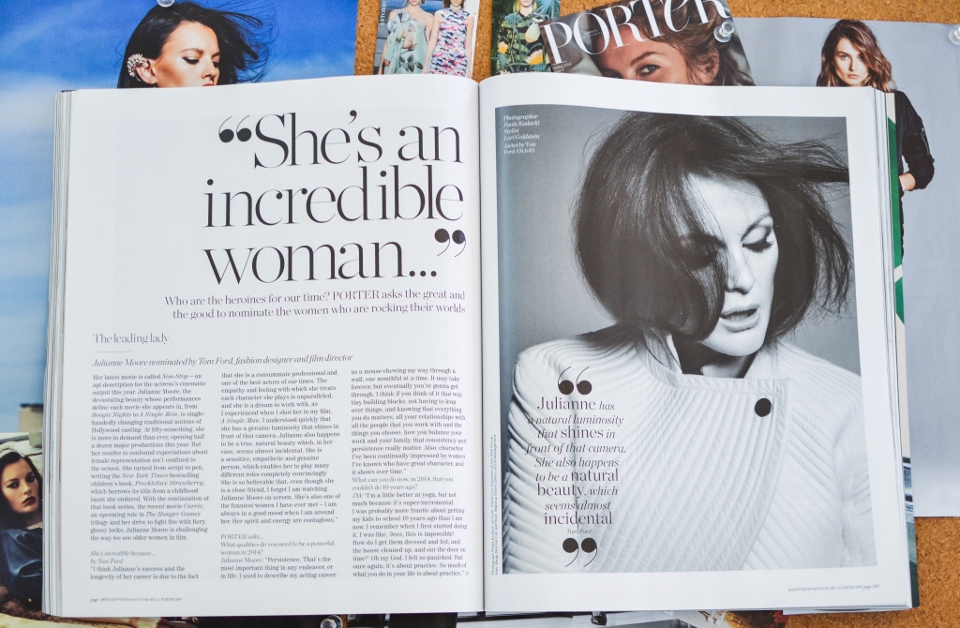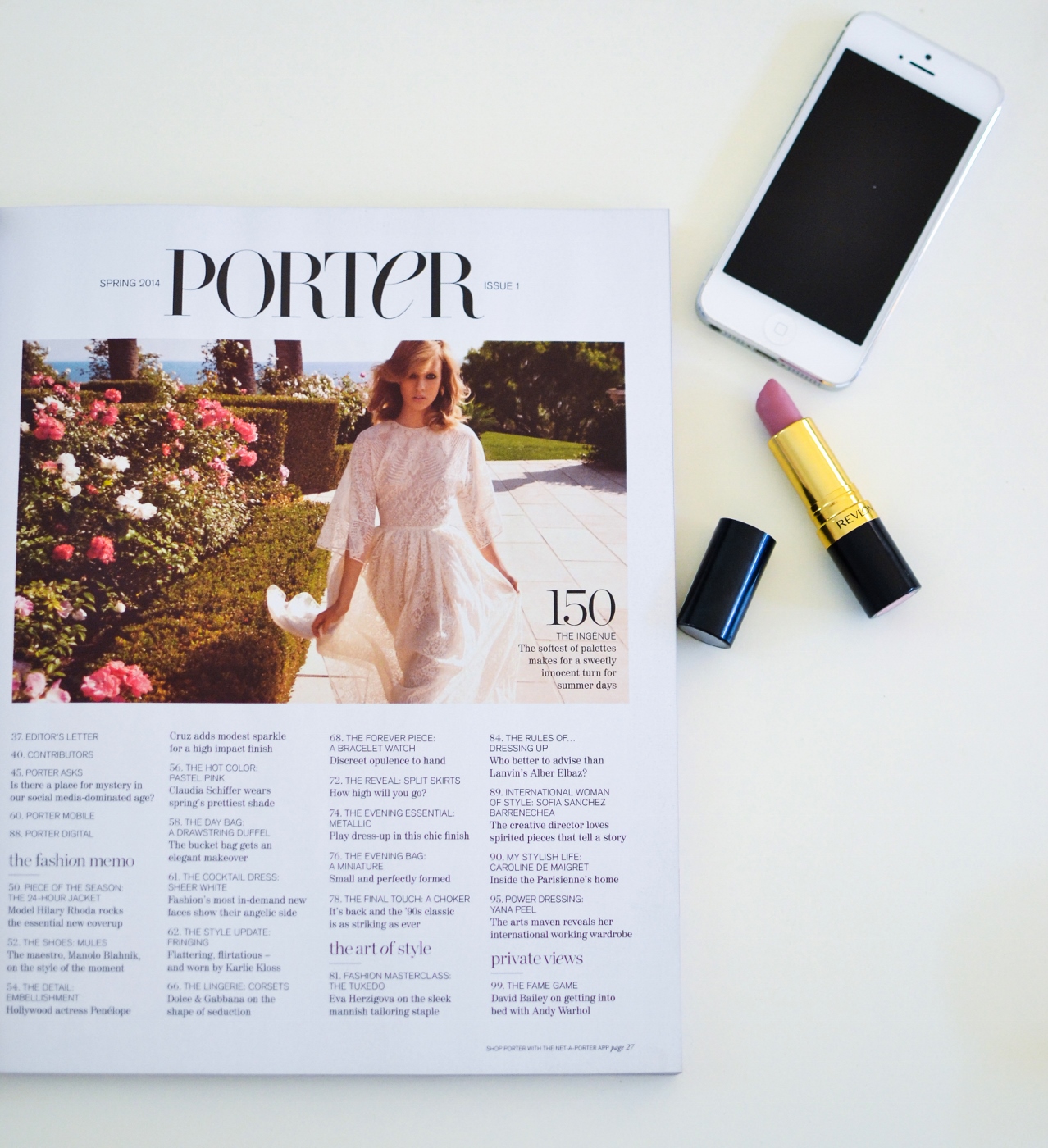 Porter Magazine to dwumiesięcznik grupy NET-A-PORTER, swoją premierę miał 7 lutego 2014. Redaktor naczelną pisma została Lucy Yeomans – dziennikarka mająca na swoim koncie m.in. 12-letni staż pracy w redakcji Harper’s Bazaar UK. Podobnie jak niegdyś magazyn ELLE oraz pismo MALEMAN, biorę pod lupę najnowsze dziecko Natalie Massenet (przy okazji, jeśli macie wolną chwilę, obejrzyjcie to inspirujące video z Vogue Festival z jej udziałem).