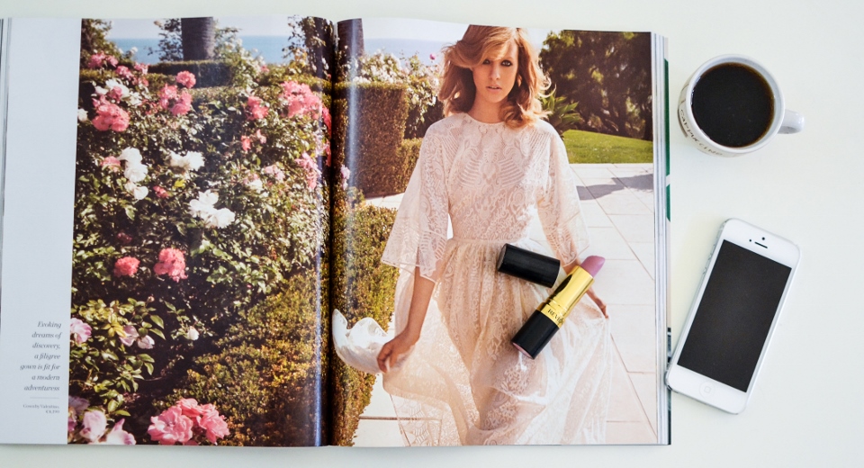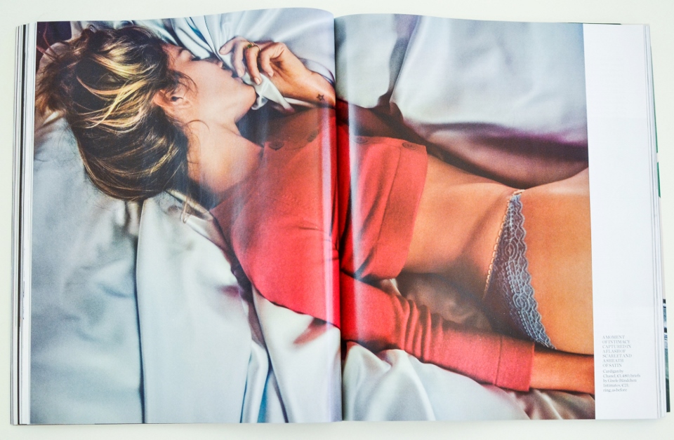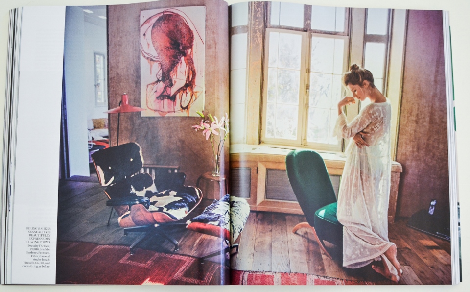 Przed otwarciem magazynu byłam przygotowana na typowo shoppingową formę – luksusowo podaną listę ubrań i dodatków, na którą nikogo z nas nie stać (a przynajmniej nie polonistów i filozofów przyp.red.). Jakże mile byłam zaskoczona, kiedy wnętrze przywitało mnie nieco inaczej. Ale zacznijmy od początku: aby dostać się do artykułu wstępnego musimy przebrnąć przez 32 strony reklam. Ok, relax, cziluś – to przede wszystkim ekskluzywne zajawki kolekcji na wiosnę-lato 2014, spokojnie nie zaatakuje Was żaden preparat na suchość pochwy ani specyfik na hemoroidy (ostatnio te reklamy prześladują mnie w radio). We wstępniaku Lucy Yeomans wyjaśnia filozofię pisma, kładąc nacisk na słowo klucz, którym jest inspiracja. Redaktorzy za punkt honoru stawiają sobie dyskusje i przemyślenia dotyczące kobiet i ich pasji, odżegnują się od ślepego dyktowania trendów.