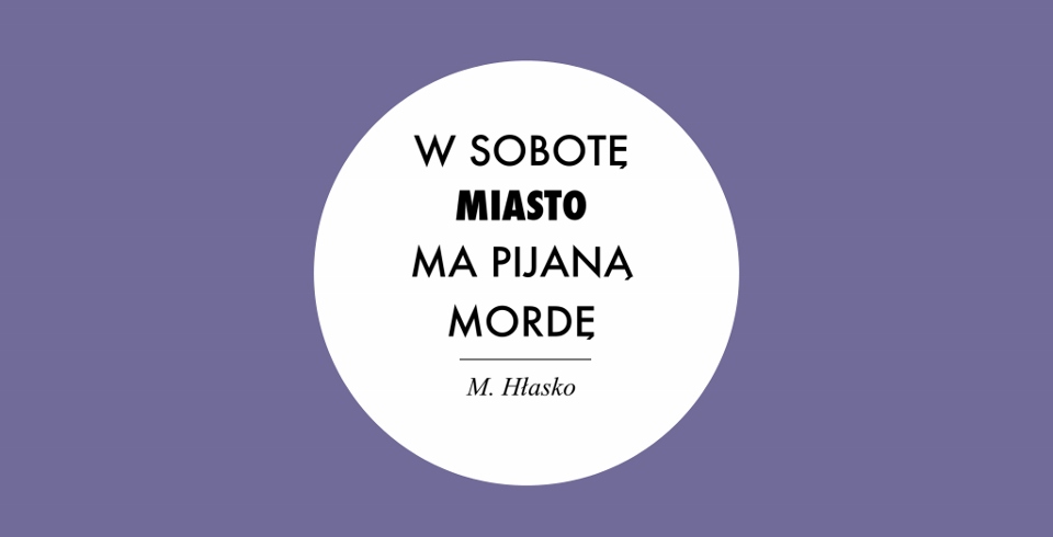 W sobotę centrum miasta wygląda tak samo jak w każdy inny dzień tygodnia. Jest tylko więcej pijanych; w knajpach i barach, autobusach i bramach – wszędzie unosi się zapach przetrawionego alkoholu. W sobotę miasto traci swoją pracowitą twarz – w sobotę miasto ma pijaną mordę (…)