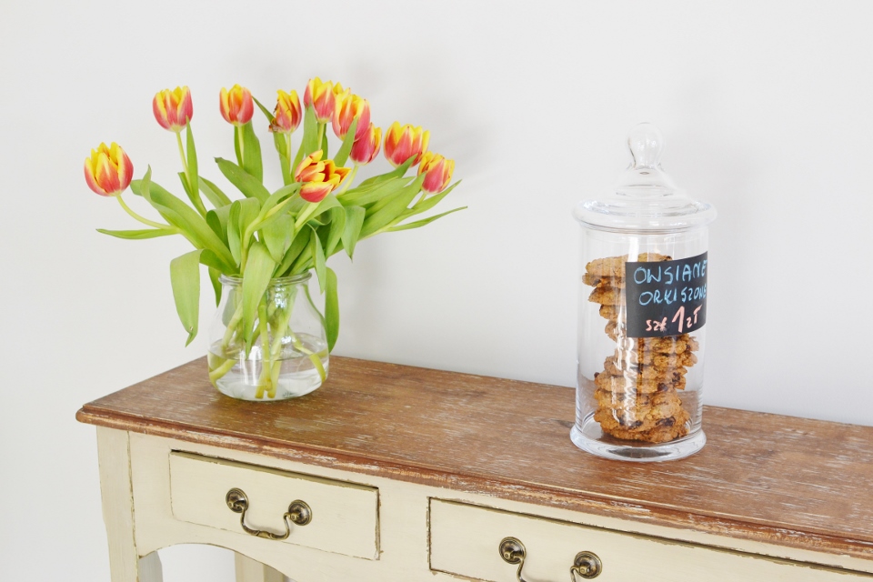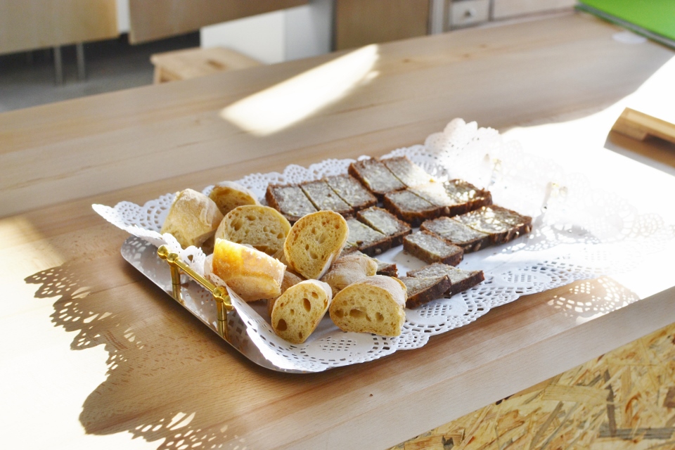 Przejdźmy jednak do piekarni Kumin. To zupełnie nowe miejsce na kulinarnej mapie naszego miasta – lokal otworzono w zeszłą sobotę na wrocławskim Ołtaszynie i docelowo będzie to piekarnia połączona z kawiarnią. Zajrzałam tam dzisiaj z ciekawości i zostałam na dłuższą chwilę, tak mi się spodobało. W piekarni znajdziecie wyrabiane ręcznie na miejscu pieczywo: chleby, bułki, słodkie bułki a także bagietki. Ciasto wykonywane jest na zakwasie lub zaczynie drożdżowym, zgodnie z francuską recepturą wydłużającą proces fermentacji. Do wyboru mamy chleby bez dodatku soli, z ziołami, takimi jak: czarnuszka, kumin, kozieradka oraz dodatkami, m.in.: suszonymi pomidorami, oliwkami, czosnkiem, bazylią, cebulą, prażonymi ziarnami słonecznika i otrębami. Wśród słodkości dominują bułki z budyniem, serem i makiem, a także cynamonki, ciastka owsiane oraz domowe ciasta.