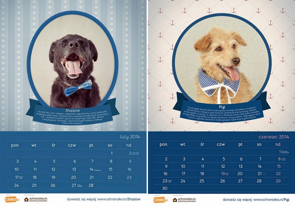 Szalenie podoba mi się forma kalendarza – wyjątkowe zdjęcia milusińskich psiaków w fantazyjnej oprawie graficznej + zabawne opisy inspirowane ogłoszeniami matrymonialnymi z okresu międzywojennego (koniecznie je przeczytajcie). Pod tym linkiem znajdziecie więcej informacji o akcji oraz wszystkie zdjęcia potrzebujących zwierzaków. Gratuluję organizatorom pomysłu na niestandardową akcję charytatywną!