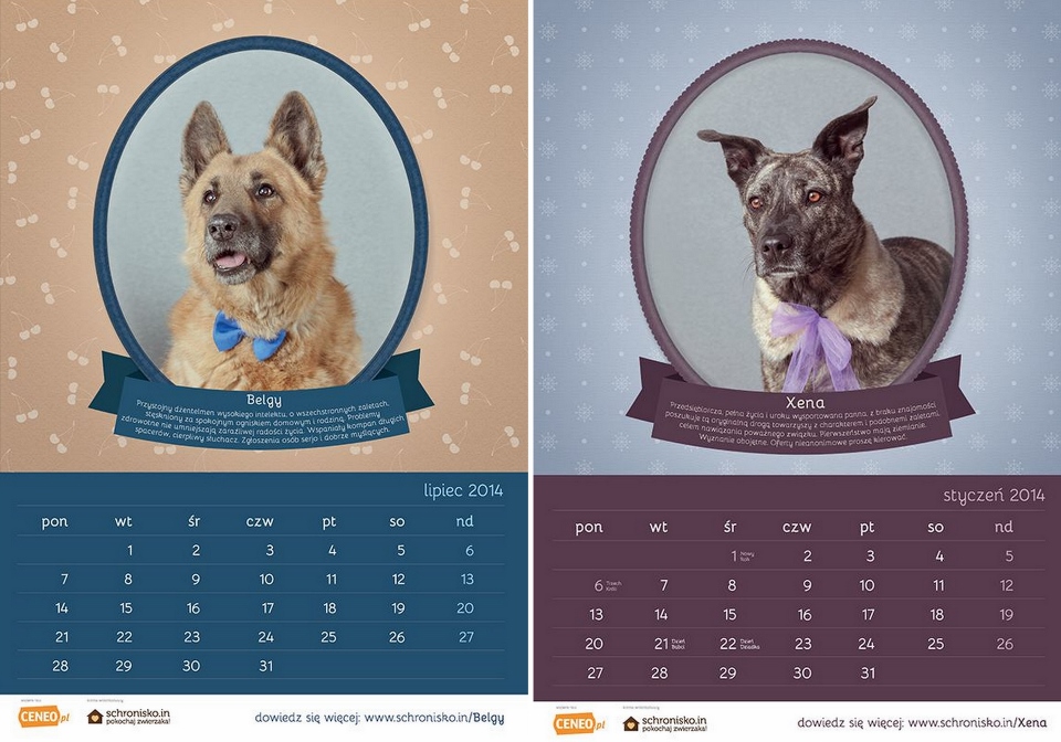 W kalendarzu na 2014 rok znajdziecie zdjęcia psiaków przebywających we Wrocławskim Schronisku dla Bezdomnych Zwierząt. Do projektu wybrane zostały psy, które w schronisku przebywają od dłuższego czasu oraz te, których wiek zmniejsza szansę na adopcję. Publikacja ma na celu zwiększenie możliwości na znalezienie właścicieli dla tych (i nie tylko) czworonogów.