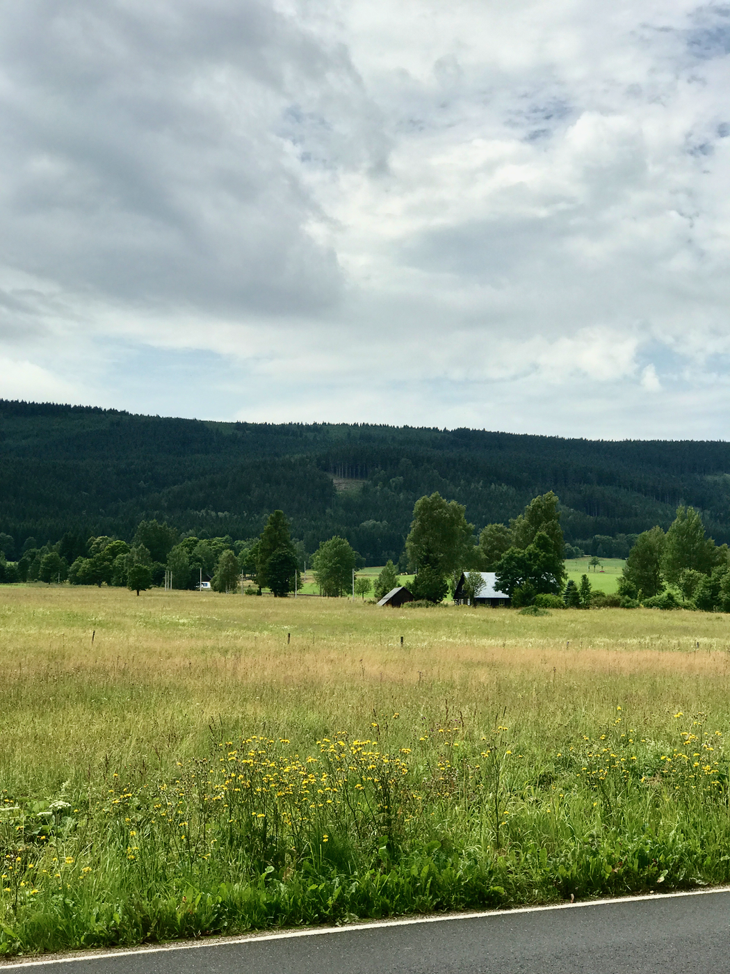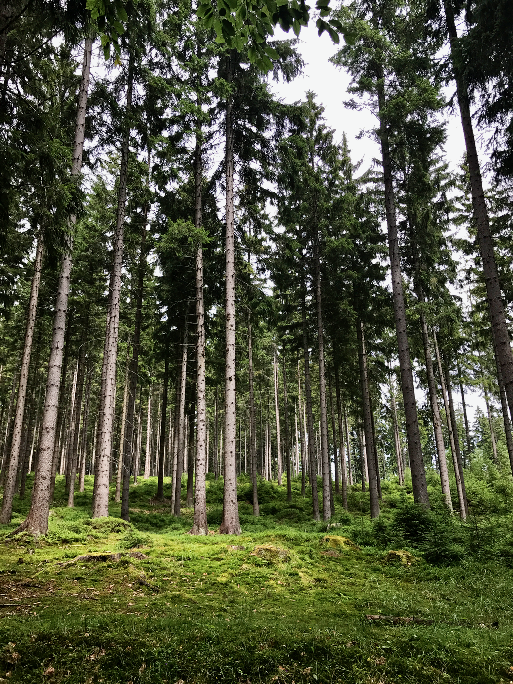 Łaknęłam zieleni, jak nigdy (siedzenie w domu robi jednak swoje). Chłonęłam te lasy, pagórki, mchy i paprocie, co rusz zachwycając się i dziwiąc, że przecież tak mi niewiele do szczęścia potrzeba. A tak często o tym zapominam. Mijając dostojne lasy, które połączeniem różnych kolorów, mogłyby stworzyć nowy filtr na Instagramie; wymijając tych wszystkich ludzi, którzy nieśli przed sobą kosze z jagodami i w końcu obserwując na twarzy Niny dołeczek w policzku, który pojawiał się za każdym razem, kiedy niespodziewanie wjechaliśmy autem na jakieś wzniesienie, zebrało mi się na melancholię.